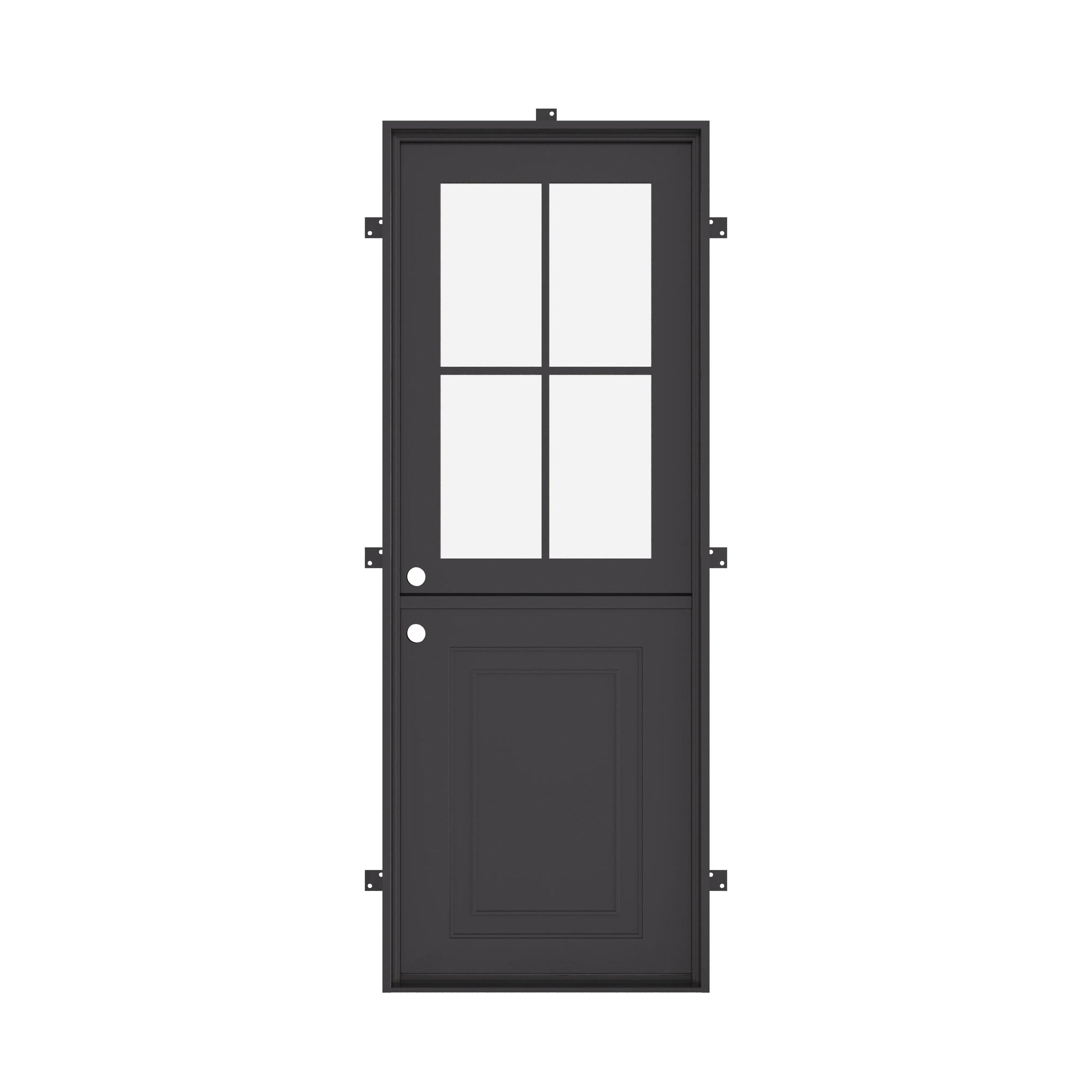 The images shown are for illustration purposes only and may not be an exact representation of the product. Air Getty Dutch Doors under 108” tall will have 4 glass panes, while doors over 108” tall will have 6 glass panes. Lock sold separately.