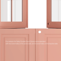 The images shown are for illustration purposes only and may not be an exact representation of the product. Air Getty Dutch Doors under 108” tall will have 4 glass panes, while doors over 108” tall will have 6 glass panes. Lock sold separately. A black spacer separating any dual pane glass will be visible on all colors other than black.