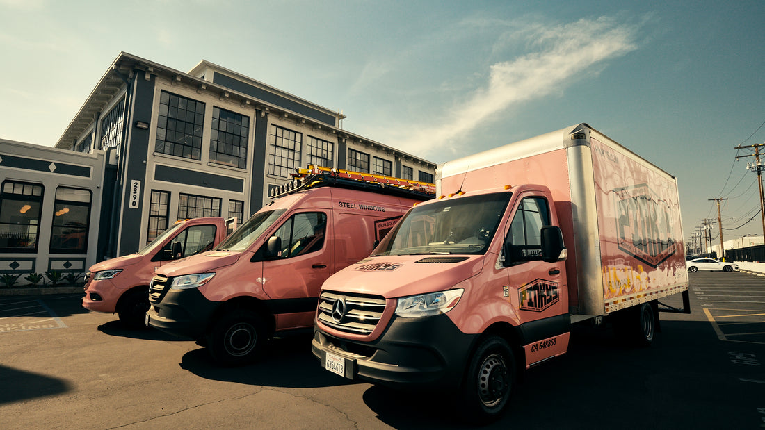 Our home in Vernon, California, near the heart of downtown Los Angeles, the PINKYS warehouse, stacked floor to ceiling with the largest stock of steel doors and windows in the U.S. Hand-made. Hand-delivered. Our people and our products, the pride of PINKYS.