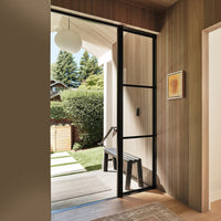 The images shown are for illustration purposes only and may not be an exact representation of the product. Lock sold separately. Air 4 Doors 120" tall and over will have 4 Glass Panes per panel. A black spacer separating any dual pane glass will be visible on all colors other than black.